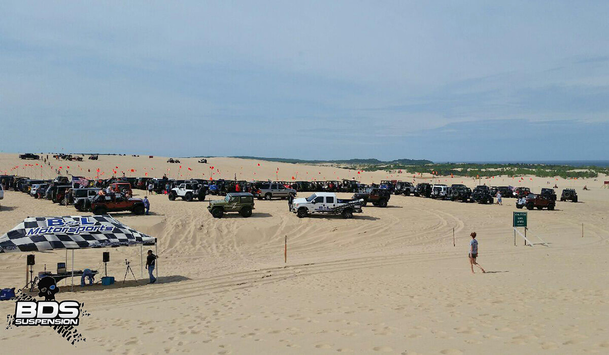 For the Silver Lake Sand Dunes Jeep Invasion, BDS was a bit strapped for Jeep vehicles with all the other events going on so we joined our friends from B&L Motorsports showing off some of our latest products and chatting with customers and attendees. With more than 400 Jeeps in attendance it was an impressive turnout. The event included a show-n-shine on the dunes Saturday, live DJ on site and activities on the dunes. By night the party continued of the dunes with a live band and beer tent. Come Sunday morning the group gathered for a morning prayer and blessing on the dunes before we another day of fun cruising around the dunes. Awesome event, we’re looking forward to next year’s SLSD Jeep Invasion!