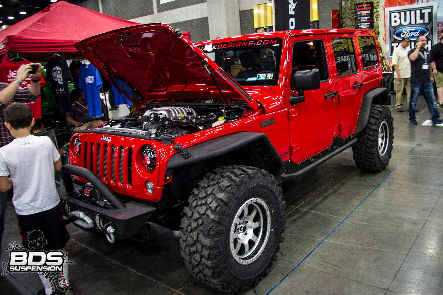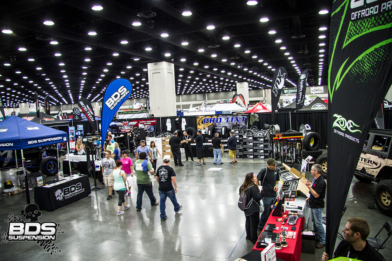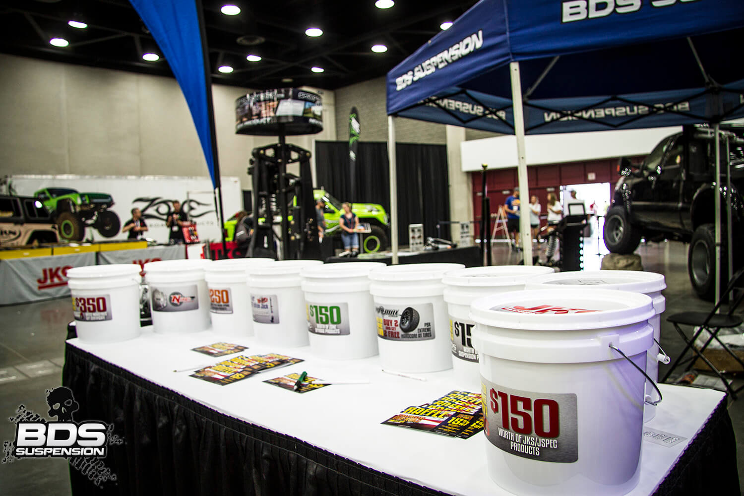 BDS had a killer spot at this show once again right next to the entrance to show. The primo spot gave us a chance to show off some bad ass builds and several of our new products for Ford, GM, RAM, Toyota, and Jeep applications. Around the show several offer vendors and customers had their BDS equipped rides all cleaned up and ready for their photos taken. Along with displaying the Chevy HD coilover conversion in the lobby of the convention center, we had it on display in the booth along with the RECOIL traction bars.  The booth stayed packed each day from the time we opened until we closed things up each night. This year we joined forces with several other companies to offer raffle prizes for the attendees. More than 1500 people entered the various raffles for a chance at gift certificates, free products and swag from BDS, Zone Offroad, JKS, FOX, Hi-Lift, Nitro Gear, Pitbull Tires, Artec, and Pac Racing. We’ll be selecting a winner shortly.