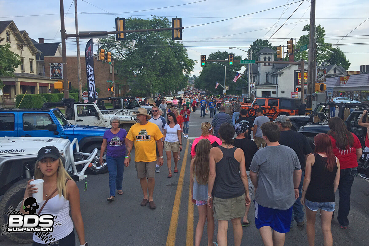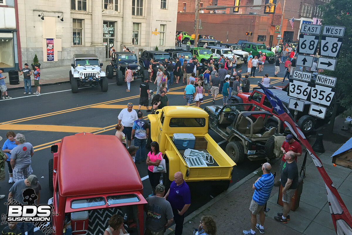 BDS was out at the event set up in the vendor area with Project KJ, our  2013 and 2014 Ultimate Adventure tested diesel Jeep Liberty along with the #EverydayChase F250. Along with showing off new products, answering questions and handing out swag, we held a raffle with our friends at FOX, Zone Offroad, and JKS to giveaway gift certificates, and a set of shocks. Around the show we spotted tons of BDS equipped Jeep in the crowd and wanted to thank all everyone that stopped by the booth to say hi. Its pretty safe to say the highlight for us was taking over downtown Butler for the invasion party. With over 1500 Jeeps setup along the streets of Butler is was a mix of old vintage and new school Jeeps. A big thanks to the town of Butler, the staff that organized it, and the law enforcement officers for their support. Now back to the office, the 8-5 grind, until next time Butler…