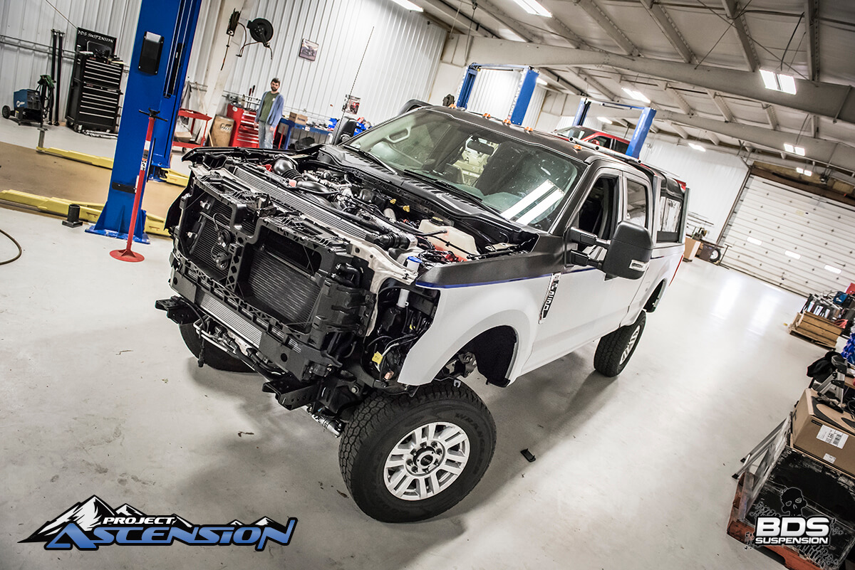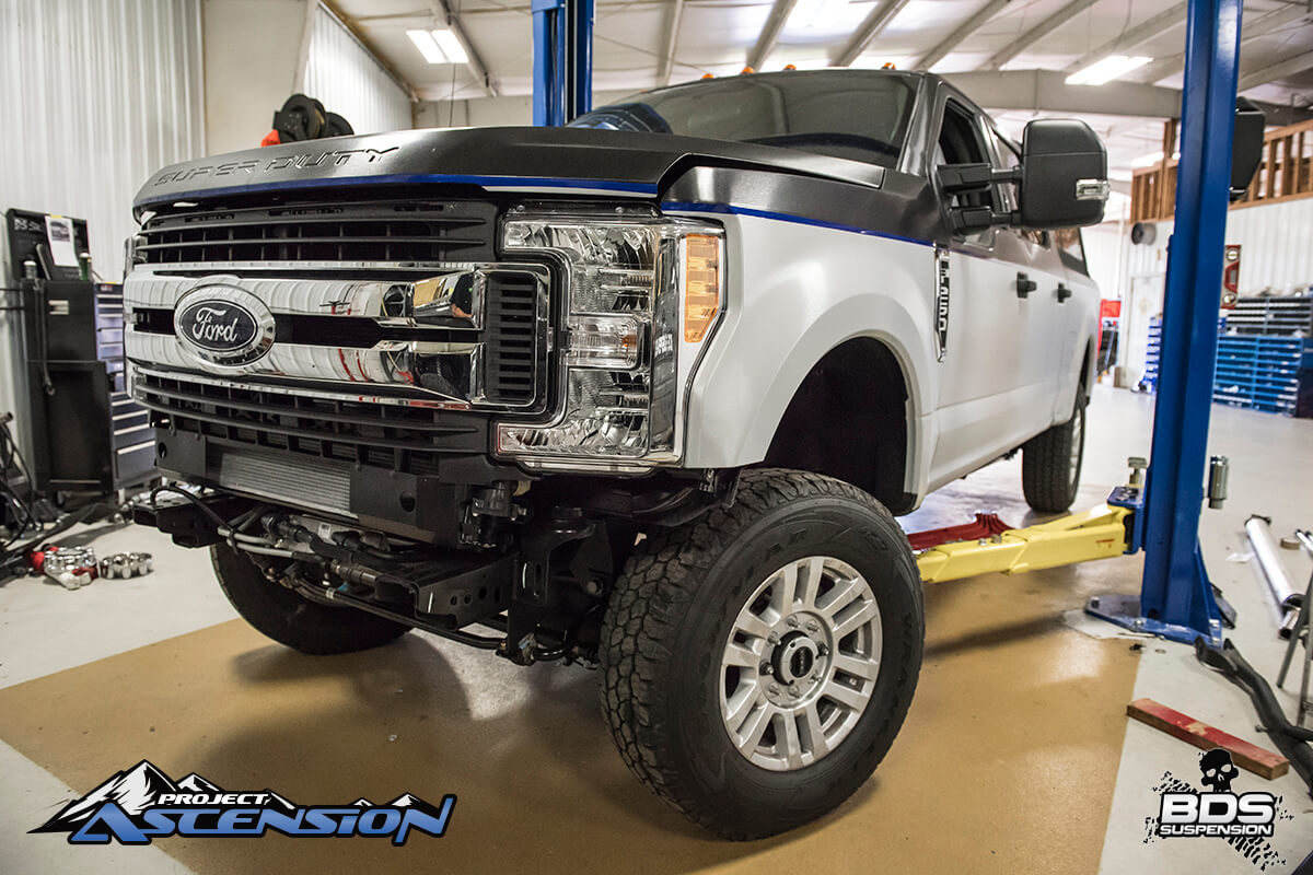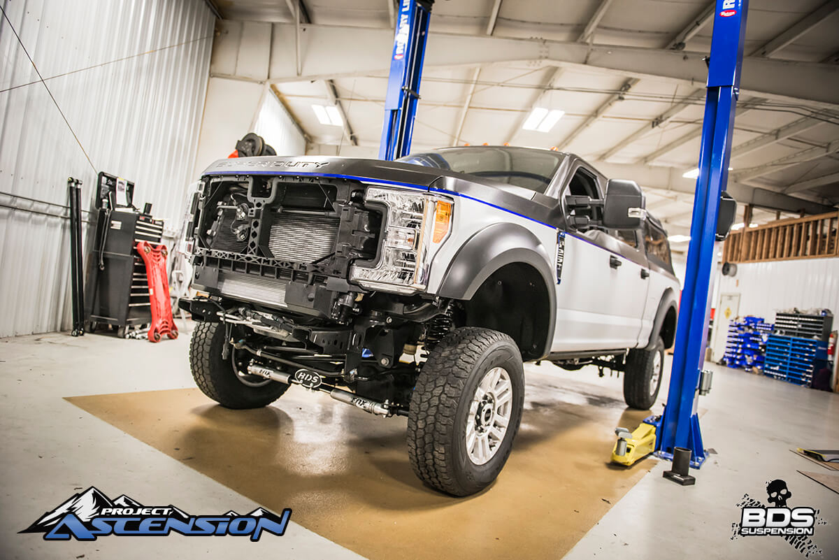 With SEMA deadline rapidly approaching the engineering team at BDS Suspension is hard at work to overhaul the new company test mule, a 2017 Ford F250 Super Duty to turn it into a head turning overloader ready for backcountry exploration or the local truck meet. This truck is slated to be in the BDS Booth (#30204) out in Las Vegas for the 2016 SEMA Show November 1-4. With 2000 miles to drive to the show, the crew its the road for Vegas the middle of next week to start the drive to Vegas in time to set up for the show and get the truck placed.
