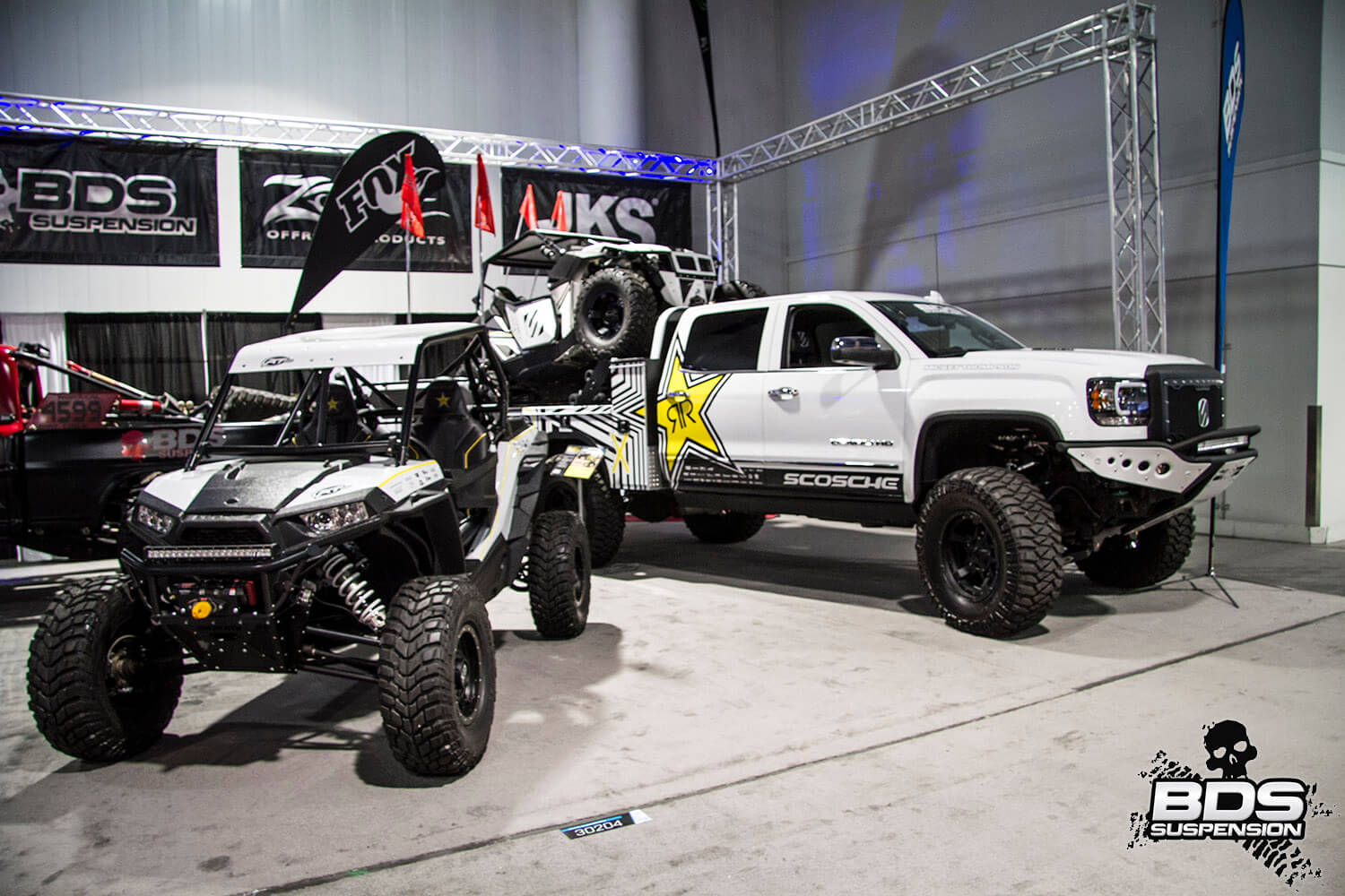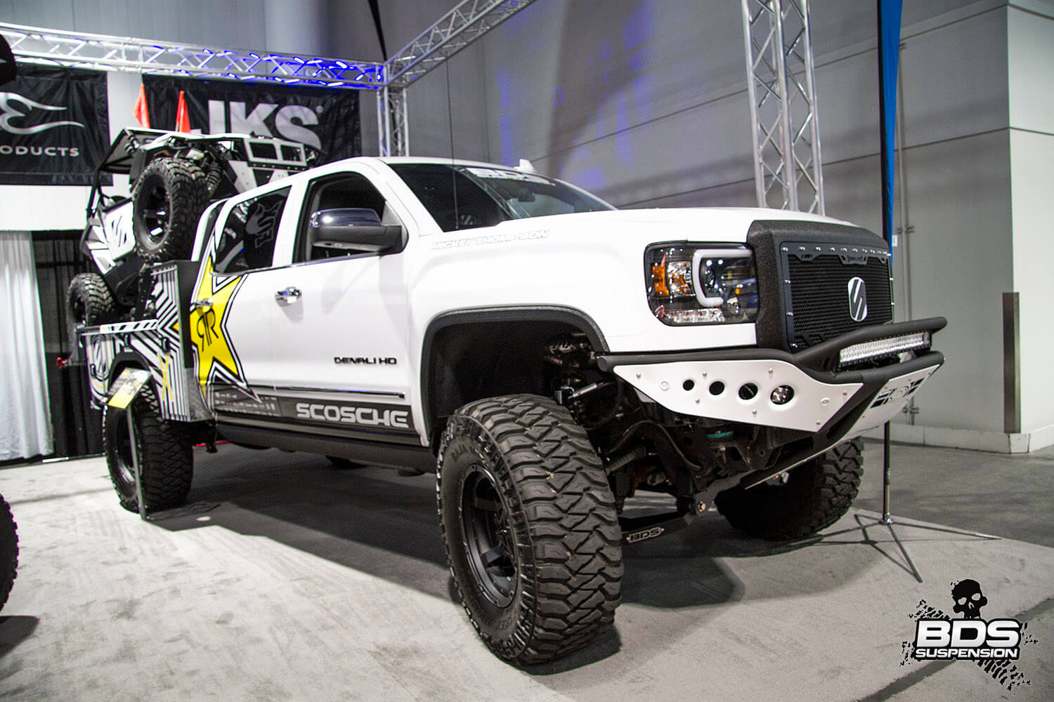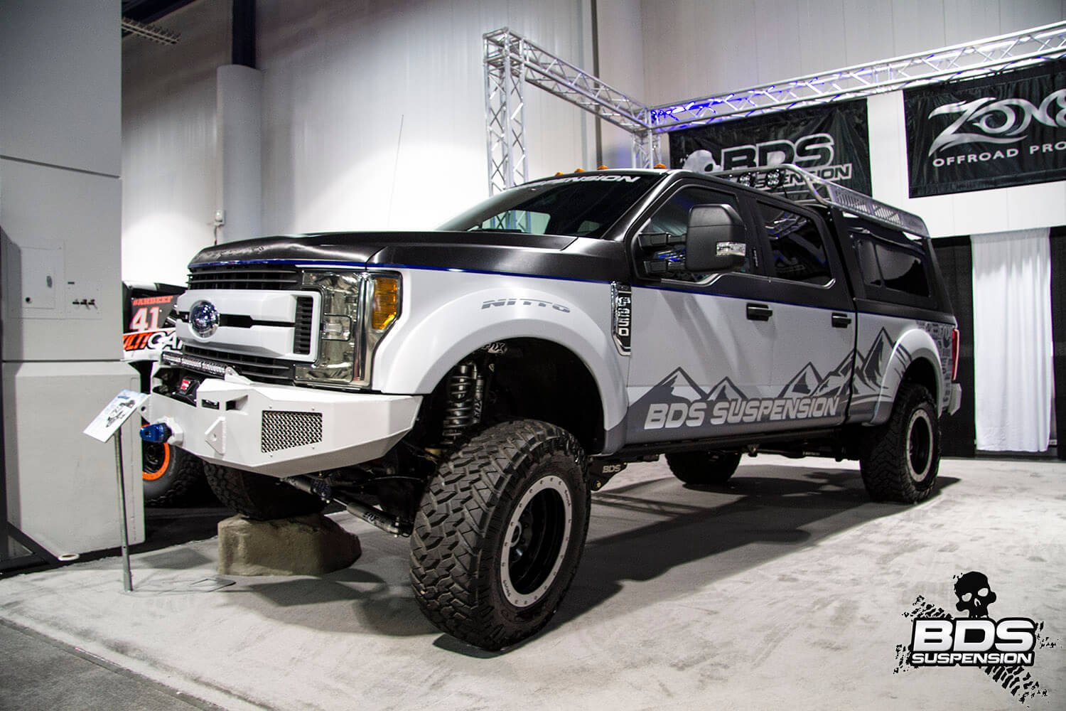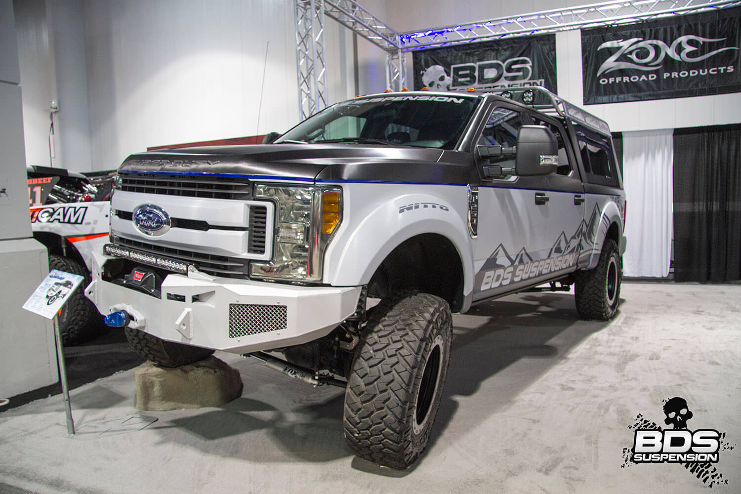 This is BDS Suspension’s 8th year attending the industry show and each the show gets bigger, pushing the envelope, and gets more over the top with manufacturers stepping up to wow the attendees with over-the-top builds, new technology and the latest innovations. BDS had a new booth this year, adjacent to our previous location which was used by parent company FOX. Our new larger 25×90′ booth space (#30204) was shared among our sister companies, BDS Suspension, Zone Offroad Products, JKS Manufacturing, and recently acquired RT Pro UTV. Across our sprawling booth space we had several show vehicles on display including Project Ascension, our 2017 Super Duty that made the cross country journey to SEMA with a stop in Moab to go 4wheeling. Also on display was a Xtreme Offroad Performance built 2016 Jeep JKU sporting the Jspec 3.5″ lift system w/ front coilover conversion, Norcal Motor Company’s ’72 Ford F100 race truck, and the Scosche 2016 GMC Denali HD outfitted with the BDS 6.5″ coilover conversion accompanied by a pair of UTVs outfitted with RT Pro gear.