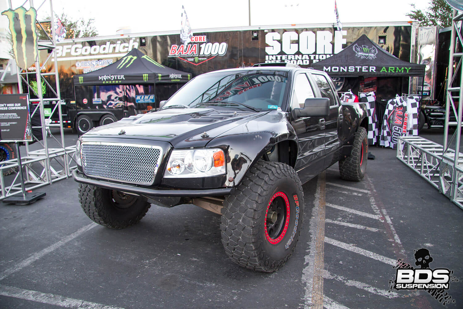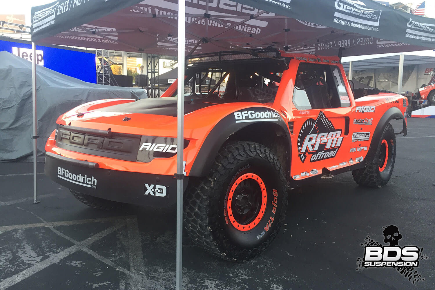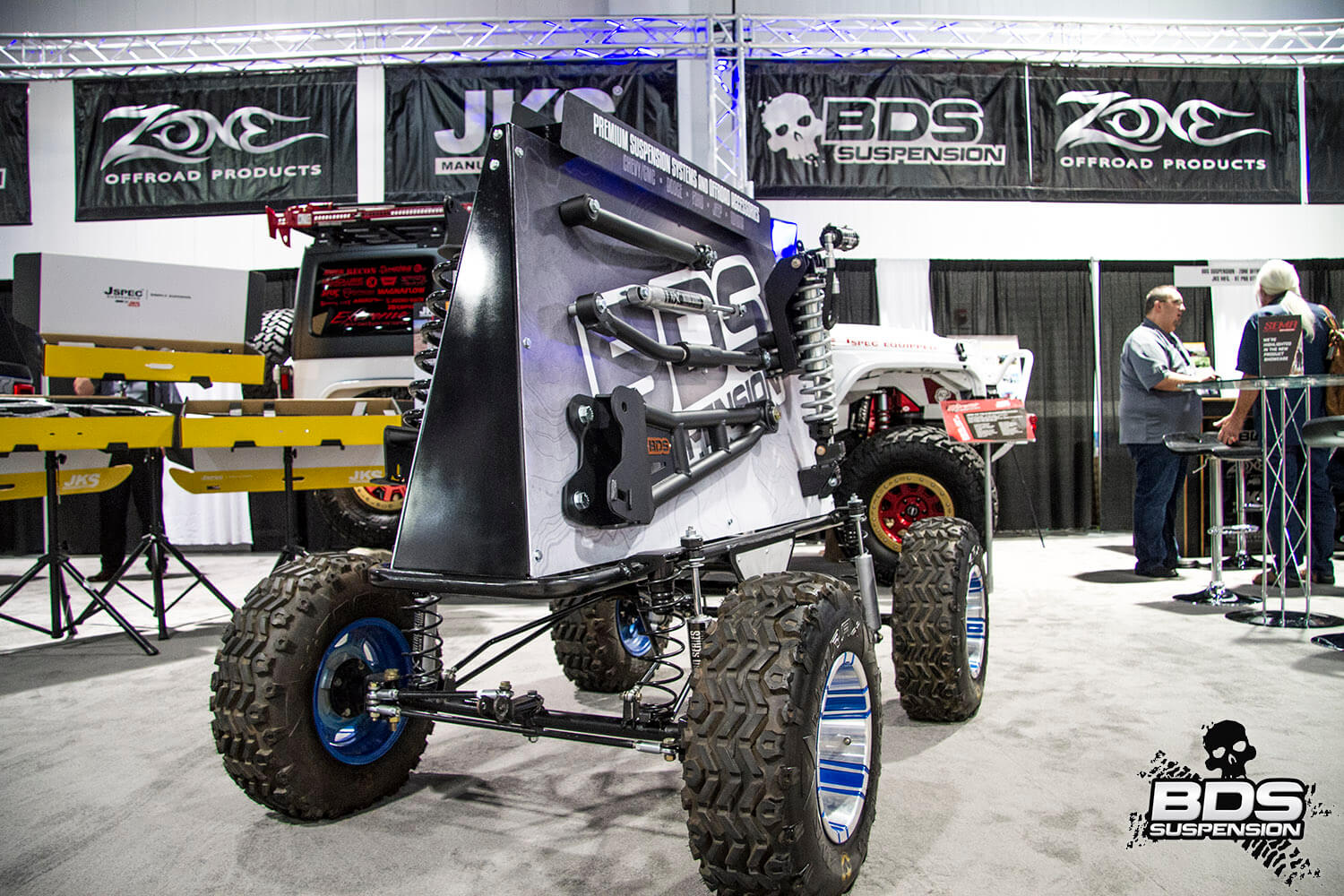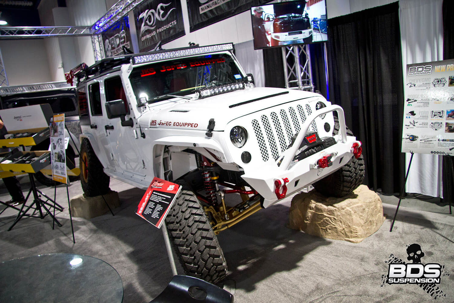 This is BDS Suspension’s 8th year attending the industry show and each the show gets bigger, pushing the envelope, and gets more over the top with manufacturers stepping up to wow the attendees with over-the-top builds, new technology and the latest innovations. BDS had a new booth this year, adjacent to our previous location which was used by parent company FOX. Our new larger 25×90′ booth space (#30204) was shared among our sister companies, BDS Suspension, Zone Offroad Products, JKS Manufacturing, and recently acquired RT Pro UTV. Across our sprawling booth space we had several show vehicles on display including Project Ascension, our 2017 Super Duty that made the cross country journey to SEMA with a stop in Moab to go 4wheeling. Also on display was a Xtreme Offroad Performance built 2016 Jeep JKU sporting the Jspec 3.5″ lift system w/ front coilover conversion, Norcal Motor Company’s ’72 Ford F100 race truck, and the Scosche 2016 GMC Denali HD outfitted with the BDS 6.5″ coilover conversion accompanied by a pair of UTVs outfitted with RT Pro gear.