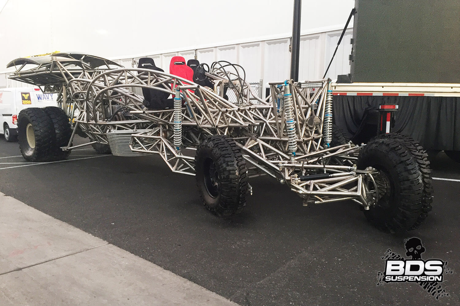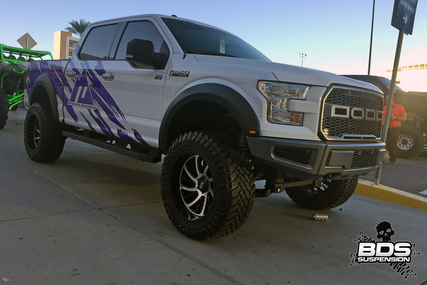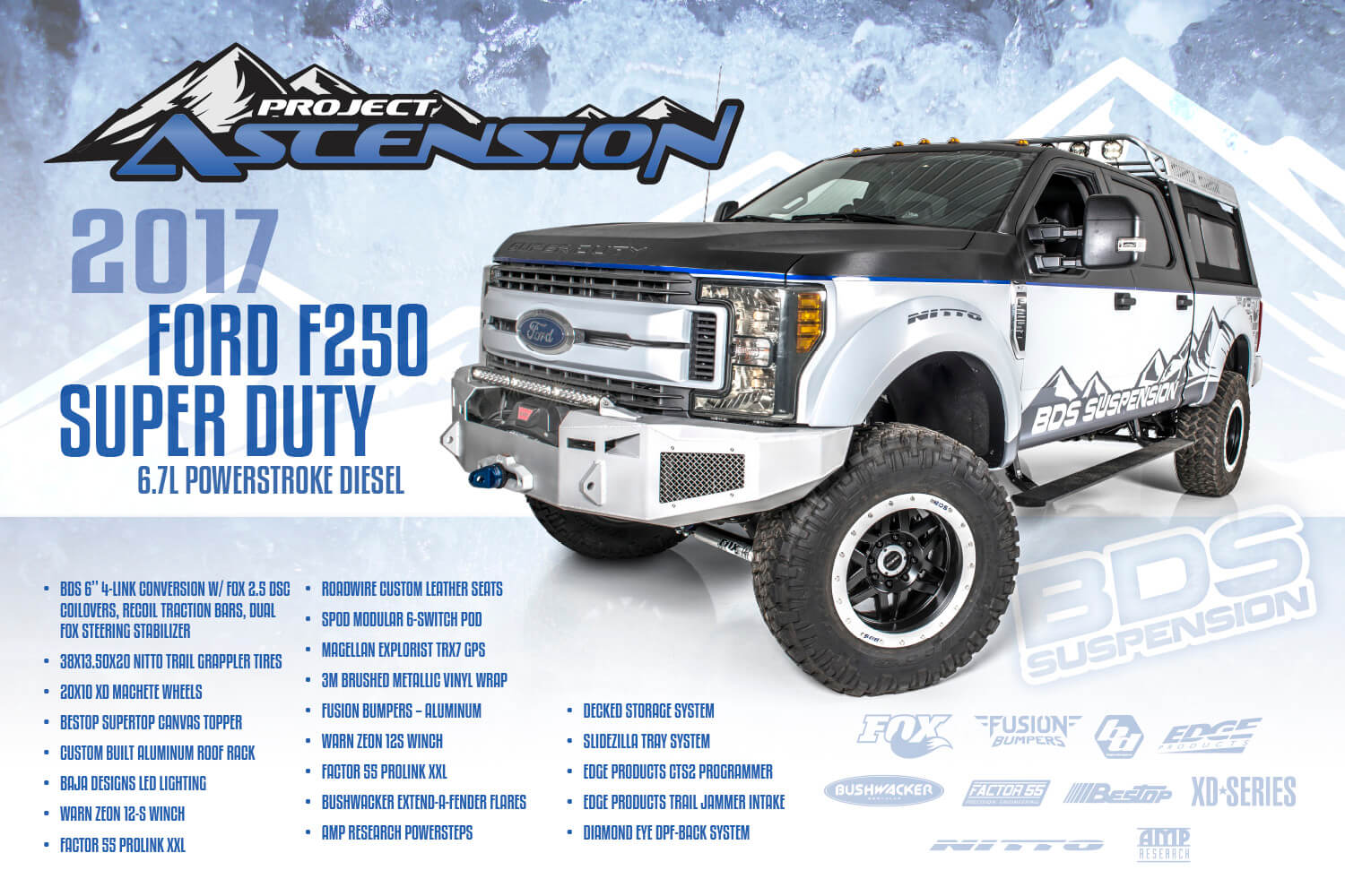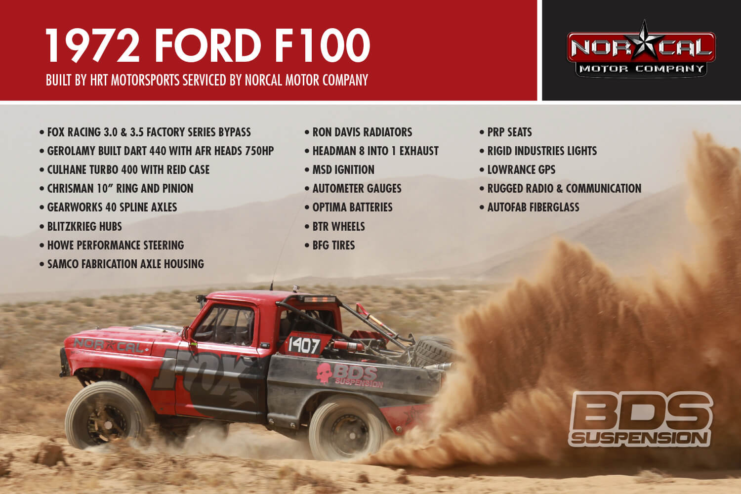 This is BDS Suspension’s 8th year attending the industry show and each the show gets bigger, pushing the envelope, and gets more over the top with manufacturers stepping up to wow the attendees with over-the-top builds, new technology and the latest innovations. BDS had a new booth this year, adjacent to our previous location which was used by parent company FOX. Our new larger 25×90′ booth space (#30204) was shared among our sister companies, BDS Suspension, Zone Offroad Products, JKS Manufacturing, and recently acquired RT Pro UTV. Across our sprawling booth space we had several show vehicles on display including Project Ascension, our 2017 Super Duty that made the cross country journey to SEMA with a stop in Moab to go 4wheeling. Also on display was a Xtreme Offroad Performance built 2016 Jeep JKU sporting the Jspec 3.5″ lift system w/ front coilover conversion, Norcal Motor Company’s ’72 Ford F100 race truck, and the Scosche 2016 GMC Denali HD outfitted with the BDS 6.5″ coilover conversion accompanied by a pair of UTVs outfitted with RT Pro gear.