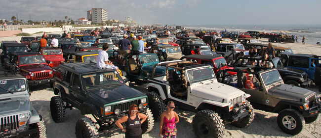 Jeep Beach 2011 is in full swing in Daytona Beach. BDS is set up in the vendor area along with our distributor DV8 Motorsports. We’ve got some awesome vehicles in the booth right now so stop by and see us! From a monster of an XJ, to a Hemi-powered JK and more, BDS has plenty to see in the booth. Stop by to take advantage of show specials and don’t forget to enter the raffle; BDS is giving away a 3” JK Lift and set of adjustable control arms. On Sunday, they will be organizing the Jeep parade on the beach, pool party, and group photo (similar to this photo form last year). We hope to see you there!