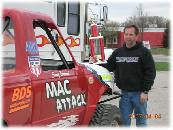 Starting the ’07 summer season, the team traveled to Fredericksburg, Texas March 31st thru April 1st for the Special Events 4 Wheel and Off Road Jamboree. Several inches of rain blanketed the fairgrounds which resulted in extremely muddy conditions With some of the nations top competitors, Sonny in the Mac Attack qualified third Saturday afternoon.