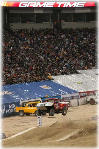 Racing in the USHRA Monster Jam Series was challenging at times, the weather conditions ranged from 70 degree temps with thunderstorms and tornados to ice storms with frigid temps and 12 inches of snow to top it off. Some of the fiercest competitors from across the nation were there. Three months, six races, and over 300,000 spectators at the sold out domes—the Mac Attack team had some great finishes.