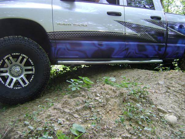 We took this 2004 truck with the BDS High Clearance 6 inch lift through our test course to demonstrate the amount of clearance. A stock truck would have been high-centered on some of the smaller obstacles. A classic torsion bar cross member drop kit would have the torsion bars dragging in the dirt. The BDS HC kit gives the most clearance and allows the truck to get up and over stuff most IFS trucks could never think about clearing.