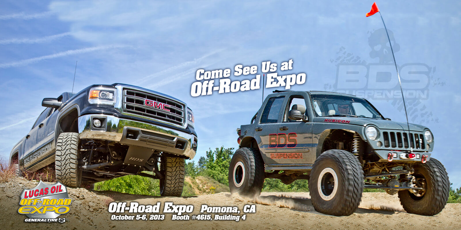 The one and only Off-Road Expo runs this weekend in Pomona, CA. The annual gathering of all things dirt, rocks, and race brings together thousands from around the off-road industry including vendors, celebrities, and enthusiasts for the 2-day event Saturday October 5th and Sunday October 6th, 2013. The Pomona Fairflex plays host to the crowds of 60,000+ come to experience the sites and sounds of Off-Road Expo. From off-road racing to rock crawling, trail riding to sand sports, to motorcycles and ATV’s, to camping and adventure travel, Off-Road Expo has something to peak your interest. Thousands of cool rides will be on display as well as TV and racing celebrities to hang out with. BDS Suspension will be among the 300+ vendors on site for the show. On display in the BDS booth, Project KJ along with a first look at the 2014 GM1500 Lift Kits. Stop by the booth (Booth#4615, Building 4) to check out the rides and talk with BDS Reps Mike and Jason about all the new products from BDS Suspension. We’ll be offering up show specials and have giveaways throughout the weekend. We’ll see you this weekend at Off-Road Expo!