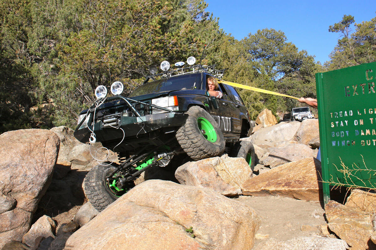 Matt Parker’s not afraid of a challenge. He frequents Carnage Canyon and other spots around Colorado with his ’98 ZJ. The Jeep has more than a few things done to it with a spec sheet to include a BDS long arm kit (Olympus coilovers for 9” of lift), a bored and stroked AMC360, built 1-ton axles, and 39” TSLs. Matt’s got a soft spot for building ZJs as this Jeep came about out of the ruins of his last ZJ which met it’s demise after a 80mph head on collision. After rolling 3 times Matt walked away without injury, his Jeep on the other hand, didn’t fair so well. Matt took the BDS long arm kit and whatever else he could salvage and began building this new ZJ into the beast that it is today. The salvaged BDS 6.5” long arm was one of the first parts to be installed as he transformed this unsuspecting Jeep into what it is today. Work by week and wheeling by the weekend Matt’s not afraid to put this former luxury Jeep into some perilous situations.