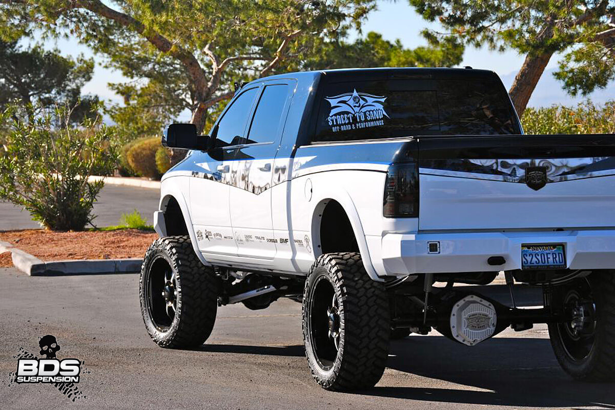 If you’ve been around the SEMA Show in recent years, you’ll know Randy Pratt’s shop Street 2 Sand Off-Road & Performance. Each year they have their hands in a number of builds with their eye for unique styling and attention to detail. 2013 was no different with vehicles spread throughout the show in booths and on display in featured spots. Heck, even the 2013 Ram 3500 we had in the BDS booth was built by his shop.