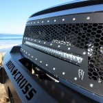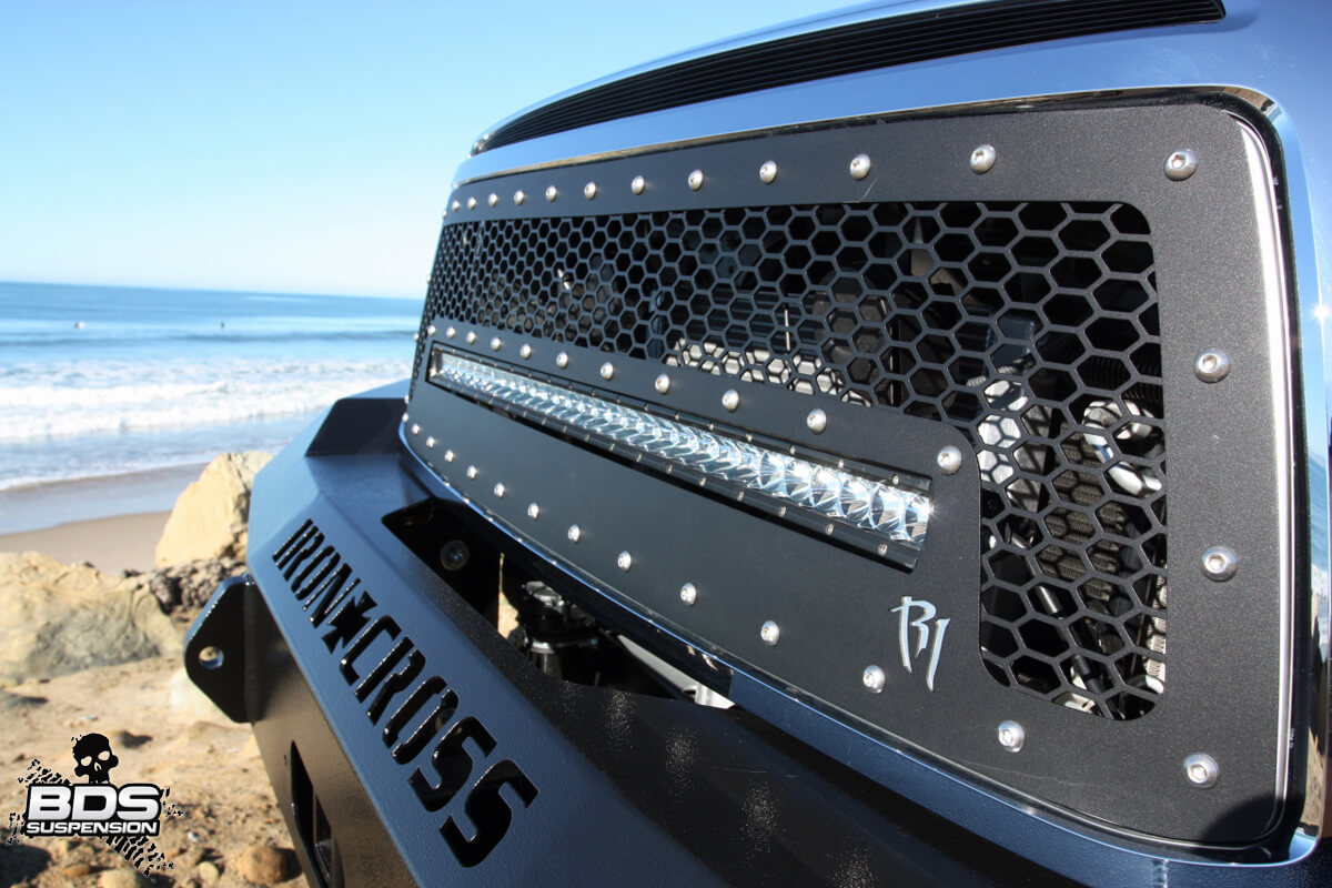 When it comes to appearance and protection, the stock bumpers just didn’t cut it. In their place Todd upgraded to a pair of Iron Cross bumpers along with a Rigid Industries LED grill and 30” lightbar. Fender flares came from EGR and Iron Cross steps offer rocker protection while easing access inside the cab. Out back an Extang trifecta tonneau cover was installed along with rear mounted Rigids and a Kleinn HK7 train horn. Inside the cab is comfortable with plush leather and a JBL Audio system.