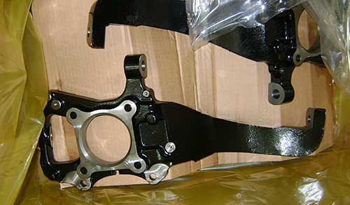 About 2 months have passed and a bunch of samples arrive. They are now off to get x-rayed for any possible defects. After x-ray the parts go to the painter for powdercoating and to the machine shop after that. 4-axis CNC machines cut all of the features and a CMM (computer measurement machine) checks all of the features to make sure they are in specification. The tolerances on certain features are extremely tight, about the thickness of a sheet of paper. Finally, two sets of machined knuckles arrive to the R and D department and now we can really get started…